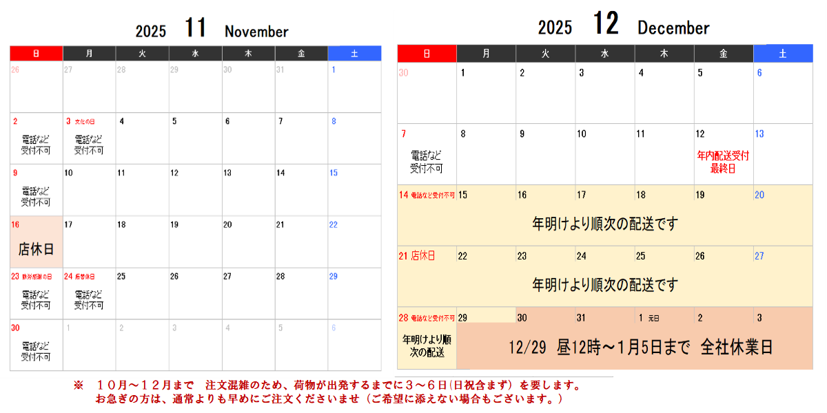 2025年内にお届けするご注文の受付は 12月 12日(金)まで